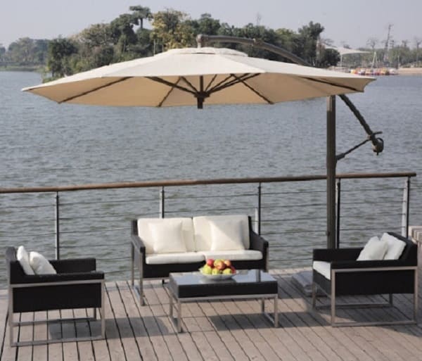 Khác với loại ô dù chính tâm, ô lệch tâm tròn giúp tiết kiệm không gian rất hiệu quả. Phần thân dù được thiết kế lệch sang một bên để phân biệt với ô chính tâm. Với kiểu dáng này sẽ mang lại cảm giác rộng rãi, dễ chịu và việc bày trí dưới tán dù cũng sẽ dễ dàng hơn. Hơn nữa, nhiều loại ô dù còn có phần bánh xe nên việc di chuyển sẽ tiện lợi hơn.