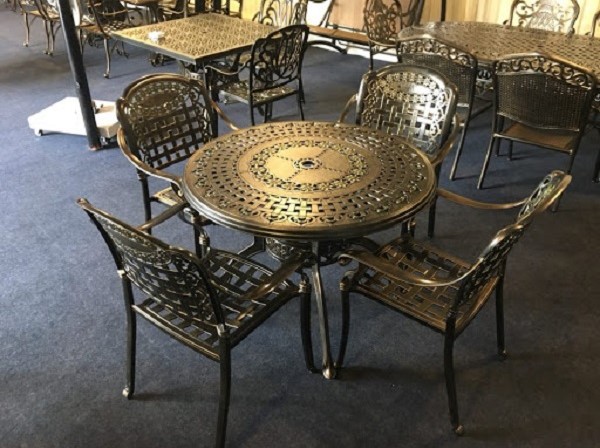 Chất liệu này không chỉ cứng cáp mà còn có khả năng kháng nước, kháng gỉ và hạn chế tối đa các tác động từ môi trường. Bạn có thể đặt bộ bàn ghế nhôm đúc nghệ thuật làm bàn ăn/bàn trà tại khu vực sân vườn/ban công mà không phải lo sợ thời tiết bào mòn.