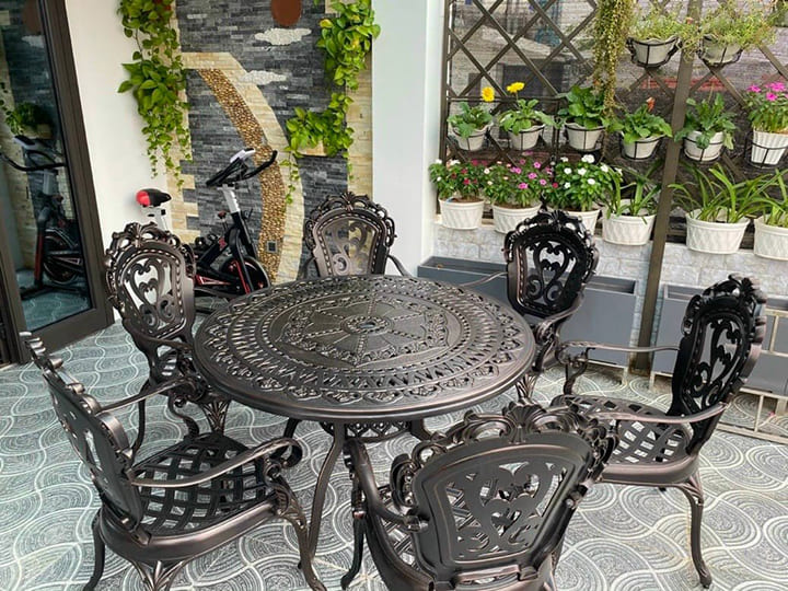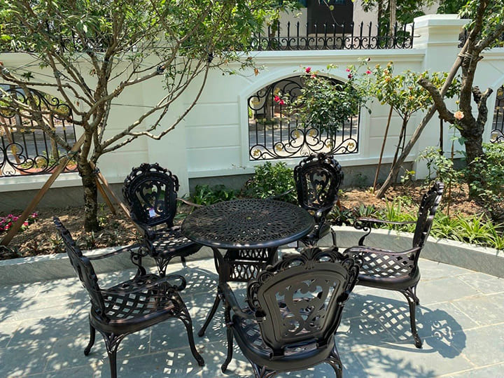 Bộ bàn ghế sân vườn ngoài trời TCĐ-D100 là mẫu mới nhất của năm 2022, với thiết kế kiểu dáng sang trọng lịch sự dành cho những khách hàng có gu thẩm mỹ tinh tế, mang hơi hướng tân cổ điển, giống như thiết kế từ các nước phương tây có phong cách lãng mạng nên bộ bàn ghế sân vườn nhôm đúc này rất phù hợp với những gia chủ có phong cách như vậy.